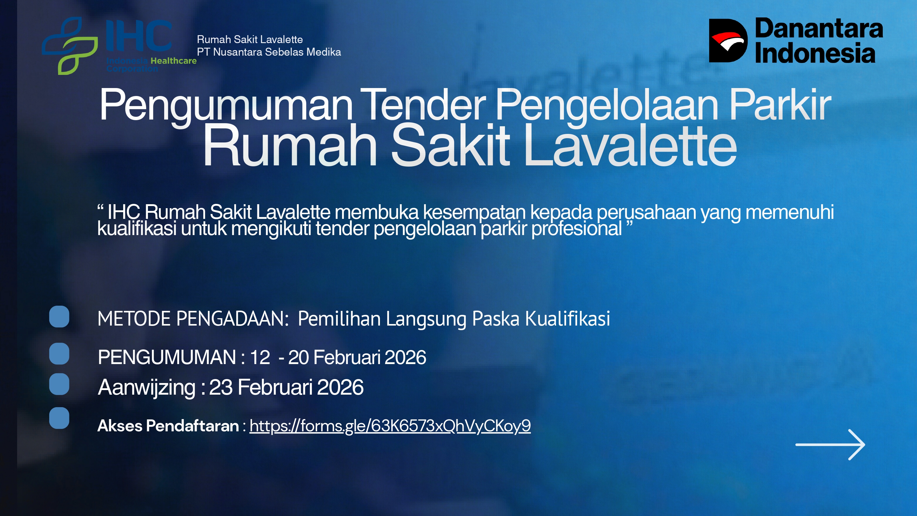 Pengumuman tender pengelolaan Parkir Rumah Sakit Lavalette - Februari 2026