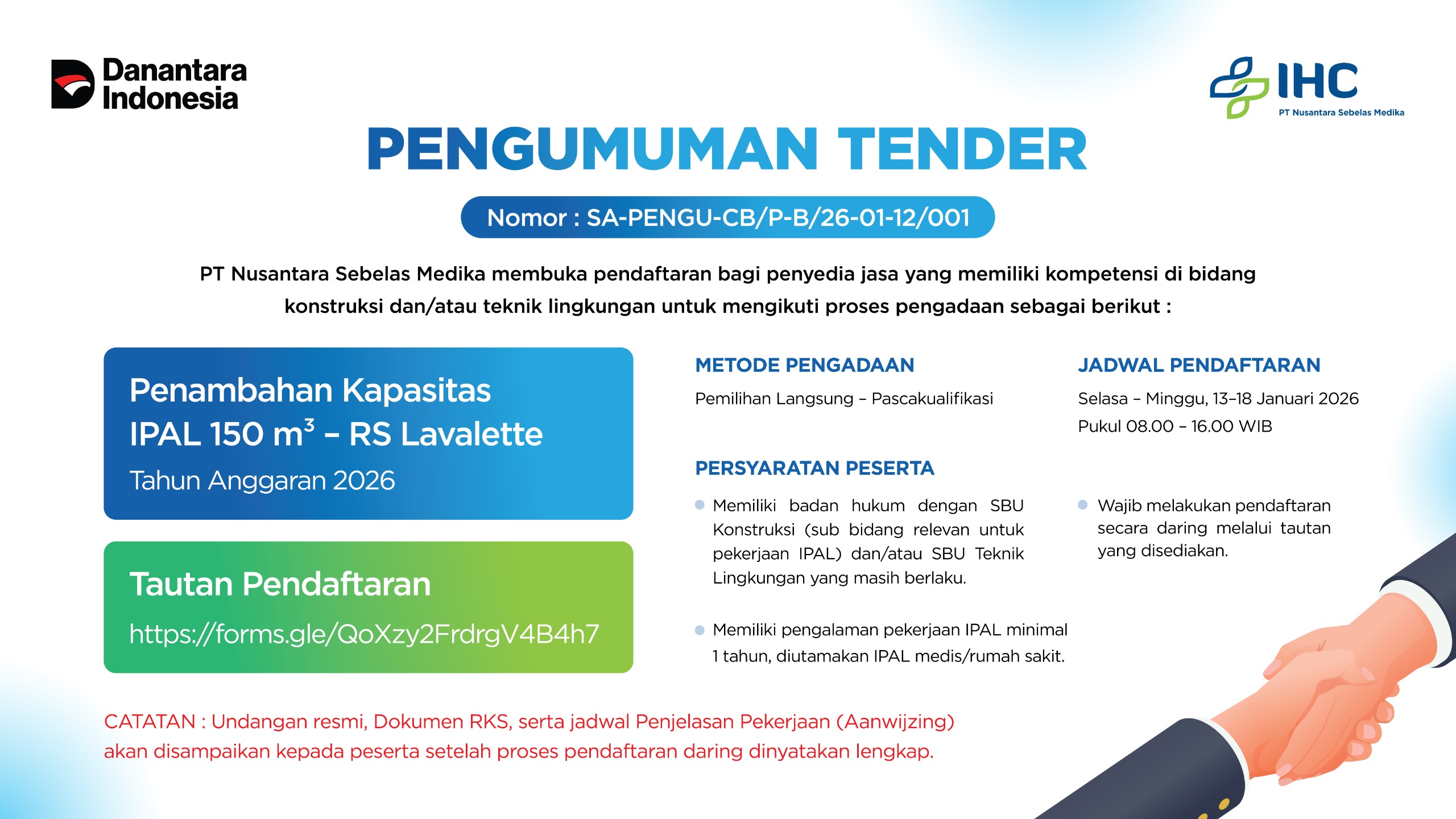 Pengumuman Tender: Penambahan Kapasitas IPAL 150 m³ RS Lavalette - Januari 2026